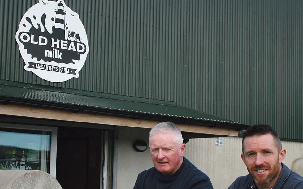 If you’ve walked the Old Head of Kinsale loop this past year, you will have passed by the McCarthy family farm and Old Head Milk shop. If you’re a daily milk drinker then undoubtedly you will also by now be a regular customer. The Atlantic ocean offers a spectacular backdrop to the cows contentedly chewing the cud on the green pastures a stone’s throw from the shop – you won’t get much closer to the ‘from farm to fork’ (or in this case ‘from farm to bottle’) experience than this. Happy cows lead to happy customers and the rich creaminess of the pasteurised, non-homogenised milk from the McCarthy herd and the consistent footfall since the coastal farm shop opened last July is testament to this writes Mary O’Brien.